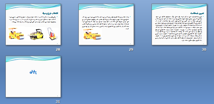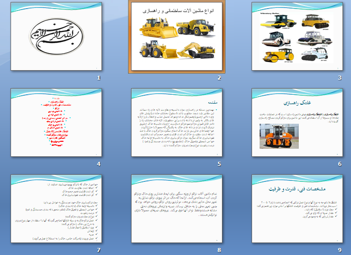 این پاورپوینت به معرفی و بررسی انواع ماشینآلات مورد استفاده در پروژههای ساختمانی و راهسازی میپردازد. در آن به نقش کلیدی تجهیزات سنگین مانند بیل مکانیکی، لودر، گریدر، بولدوزر و غلتک در افزایش بهرهوری، کاهش زمان پروژه و بهبود کیفیت عملیات اجرایی پرداخته میشود. همچنین نکاتی درباره انتخاب، نگهداری و ایمنی این ماشینآلات نیز مورد بررسی قرار گرفته است.
